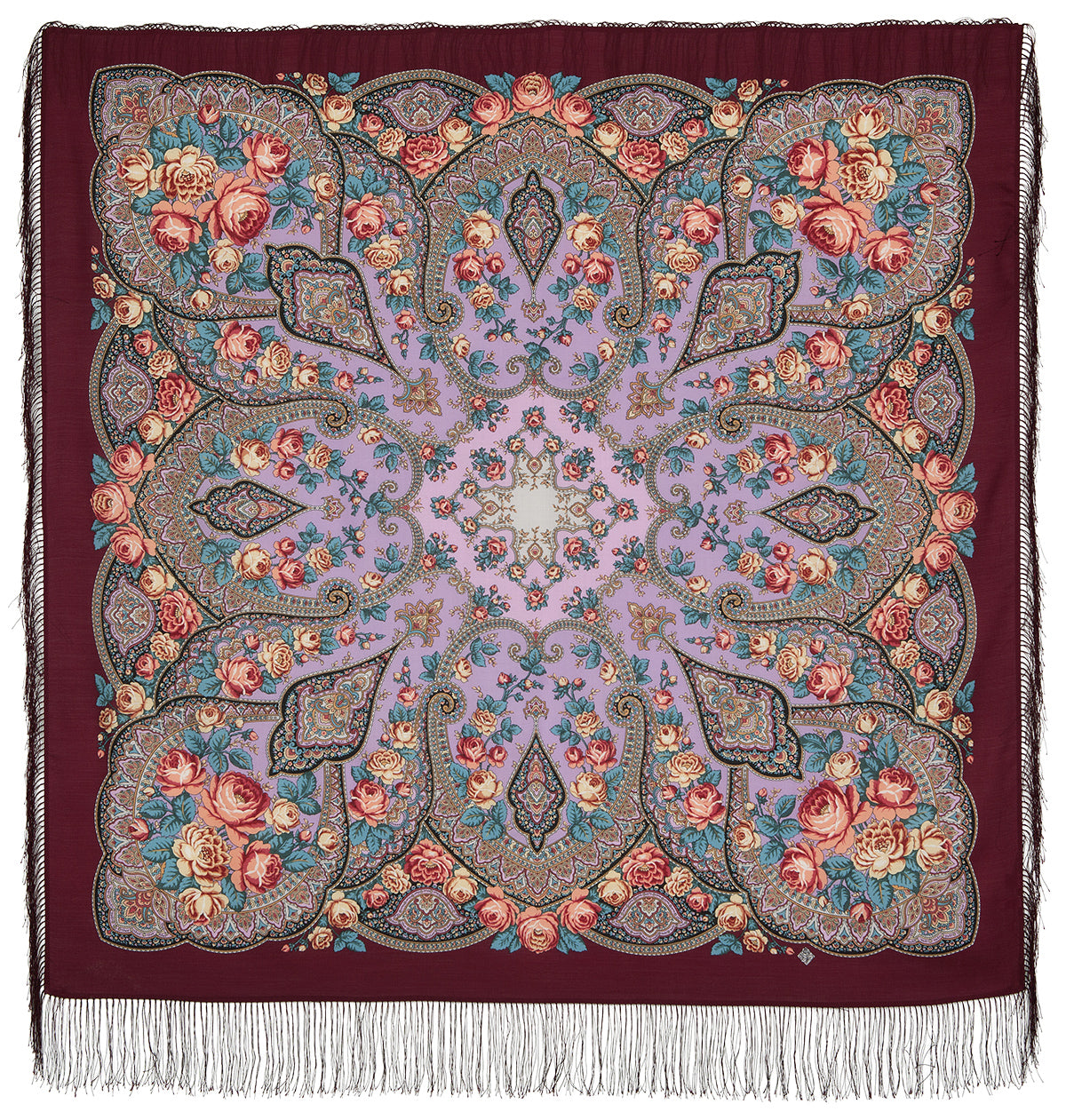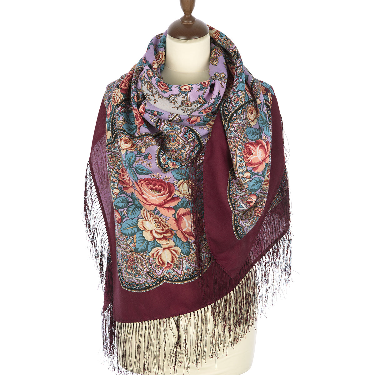 Vilnas šalle ar zīda bārkstīm "Rožu ieleja", 1639-6 , tips, 135x135 cm.