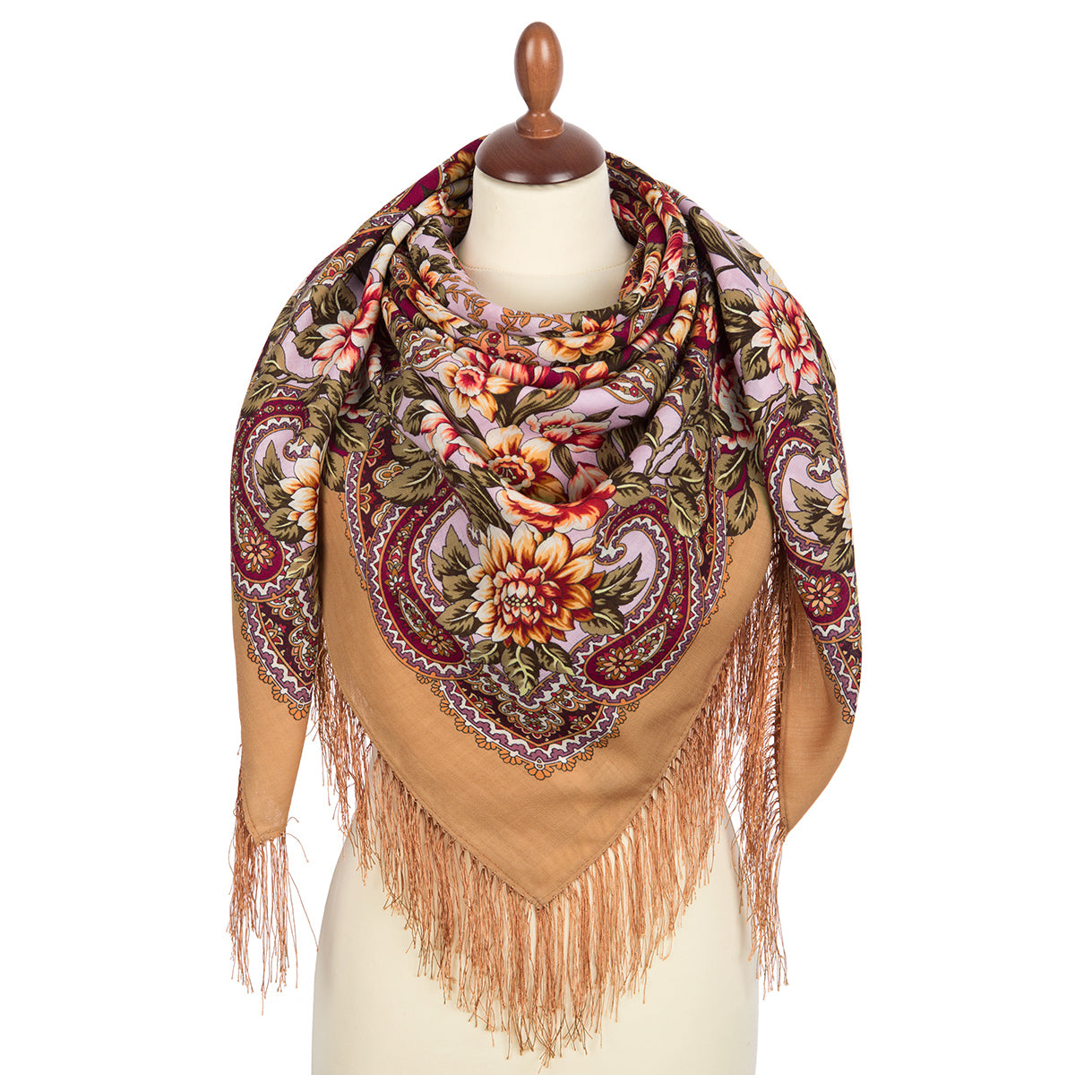 Vilnas šalle ar zīda bārkstīm "Avotu zeme", tips 1835-1, 125x125 cm.