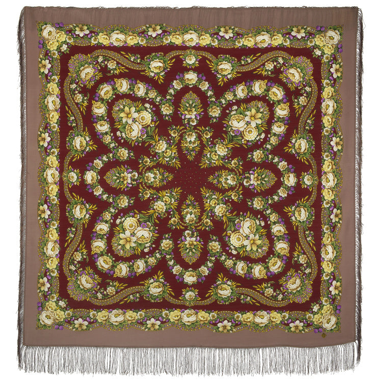 Vilnas šalle ar zīda bārkstīm "Molodushka", tips 1511-16, 146x146 cm.