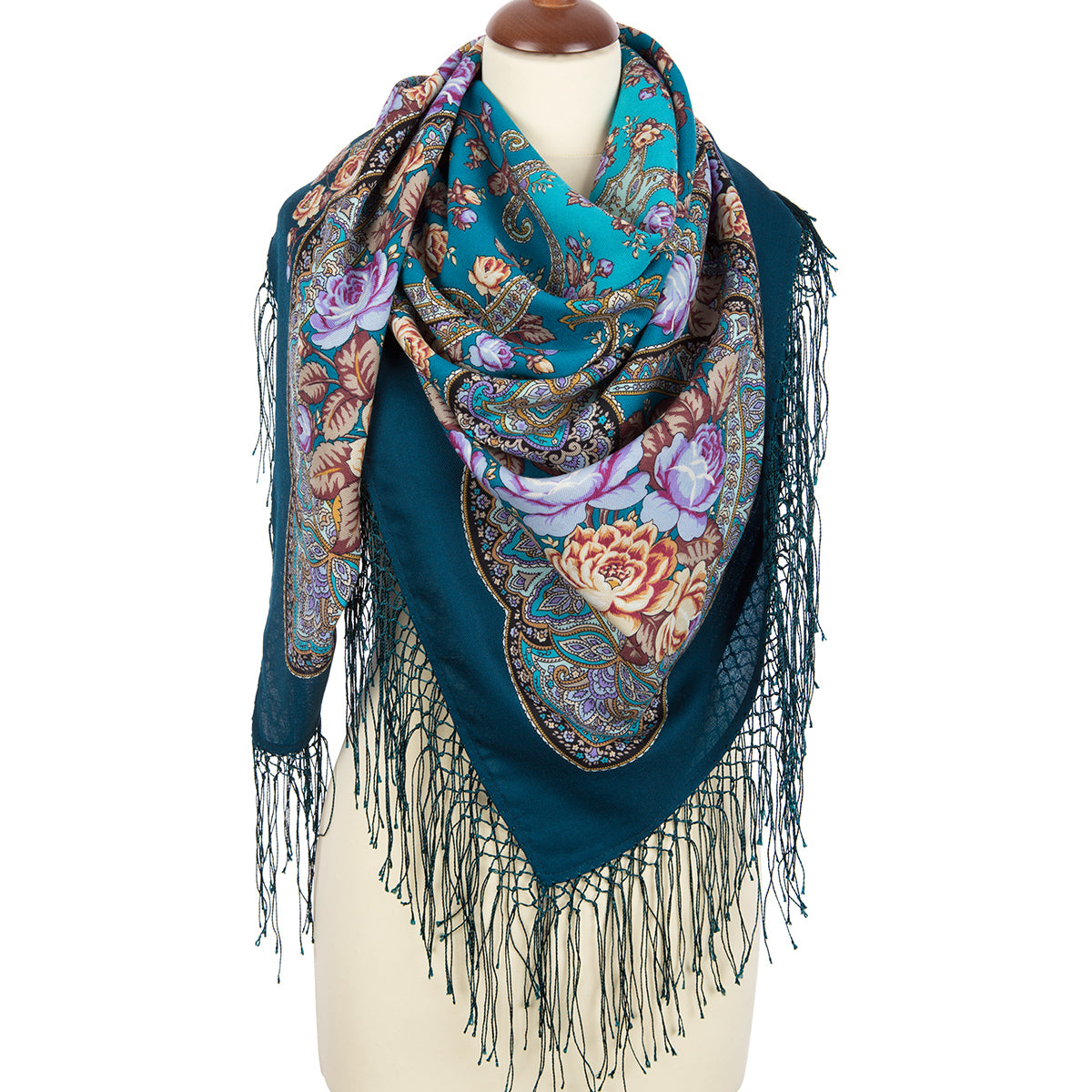 Vilnas šalle ar zīda bārkstīm "Rožu ieleja", 1639-12 , tips, 135x135 cm.