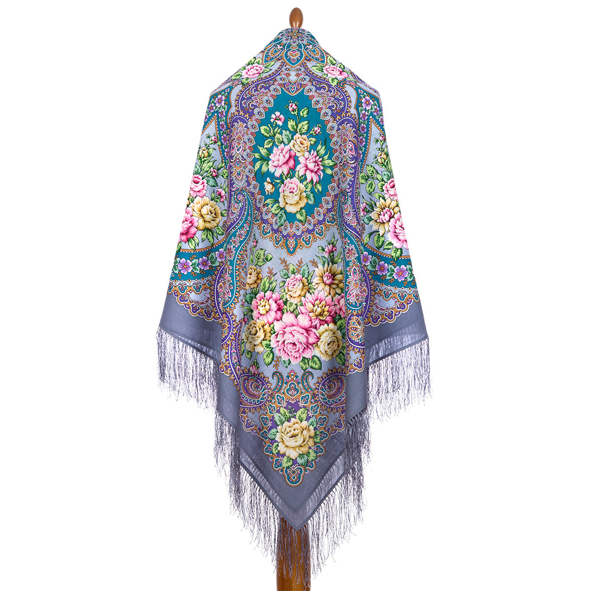 Vilnas šalle ar zīda bārkstīm "Sibīrijas skaistums", tips 1873-15 , 146x146 cm.