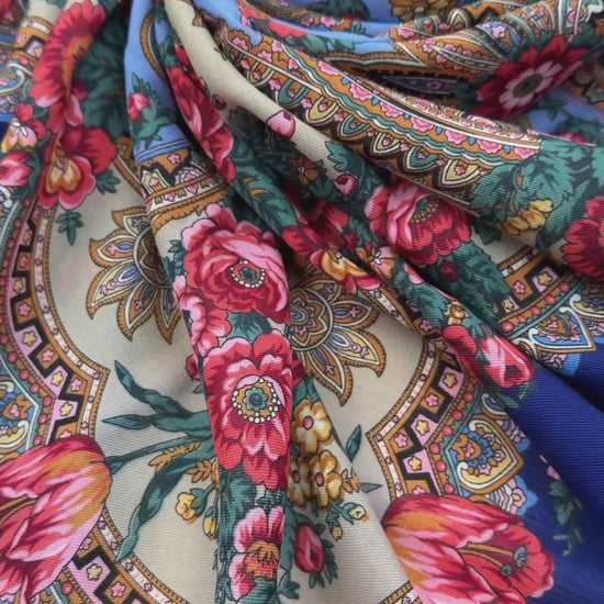 Vilnas šalle ar zīda bārkstīm "Vasaras krāsas", tips 1291-13 , 146x146 cm.