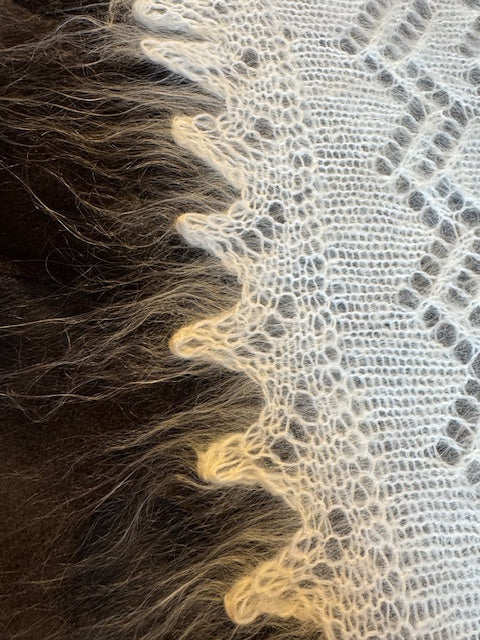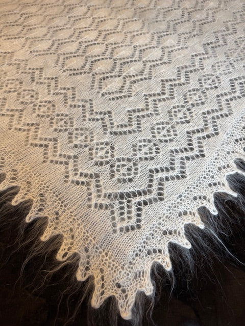 Ar rokām darināts šalle lar kazas dūnu, tips PW-37, izmērs 120x120 cm.