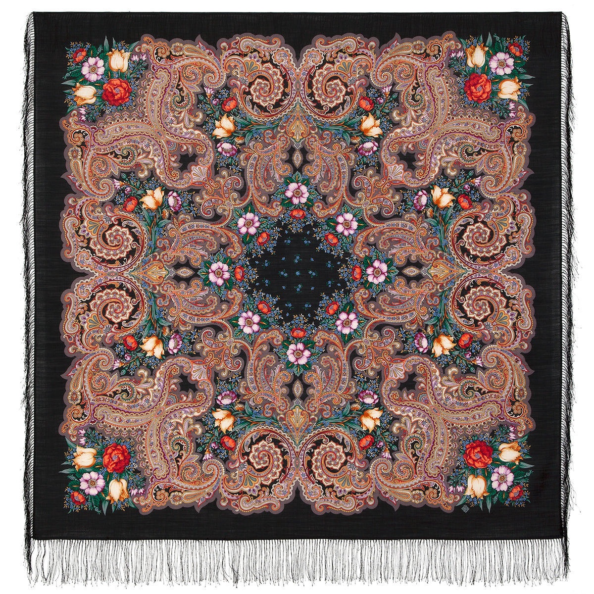 Wool shawl with silk fringe "Summer Wonder", type 1885-18 , 146x146 cm.