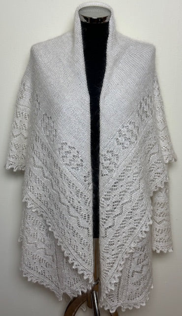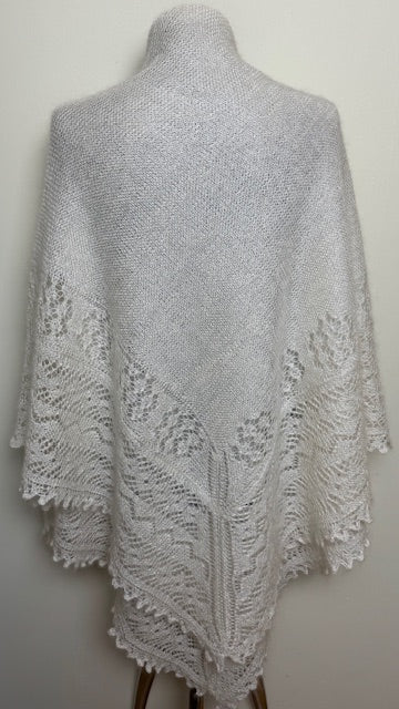 Оренбургская шаль ручной работы связана спицами из козьего пуха, тип PWO-28, размер 150x150 cm.