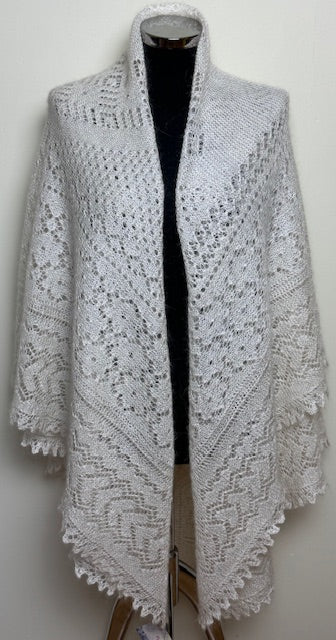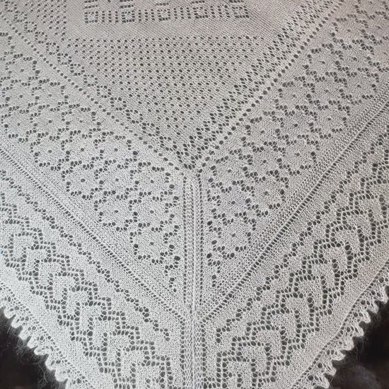 Оренбургская шаль ручной работы связана спицами из козьего пуха, тип PWO-33, размер 160x160 cm.