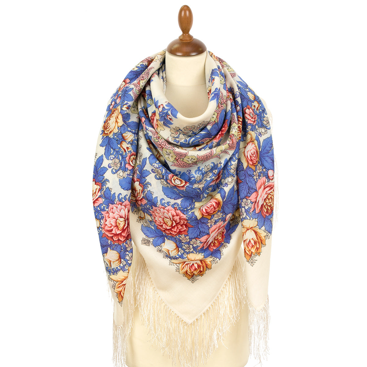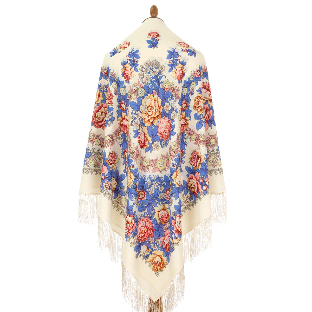 Шерстяная шаль с шелковой бахромой «Вдоль по реченьке», тип 696-3, 146x146 см.