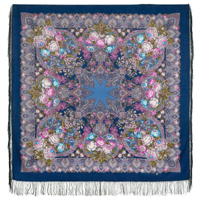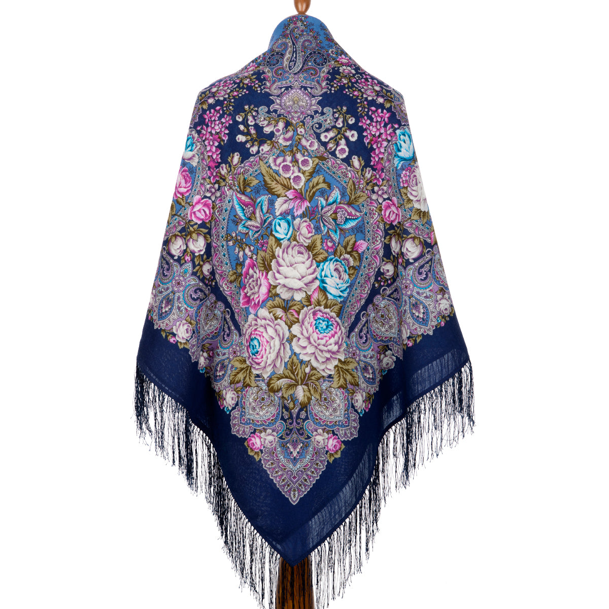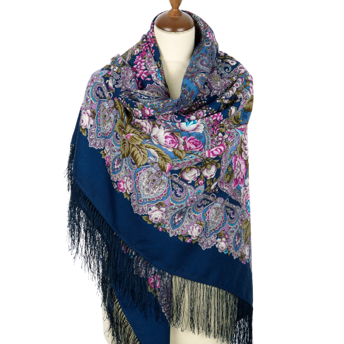 Шаль шерстяная с шелковой бахромой "Медовый полдень", тип 1724-14, 146х146 см.