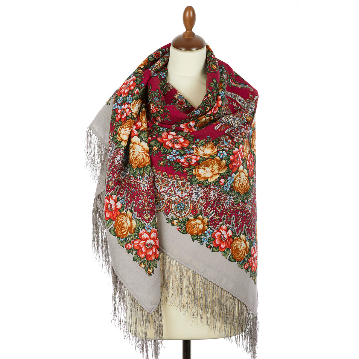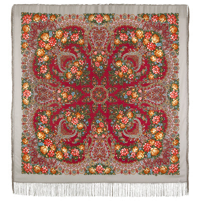 Шерстяная шаль с шелковой бахромой «Ладога», тип 1727-1, 146x146 см.