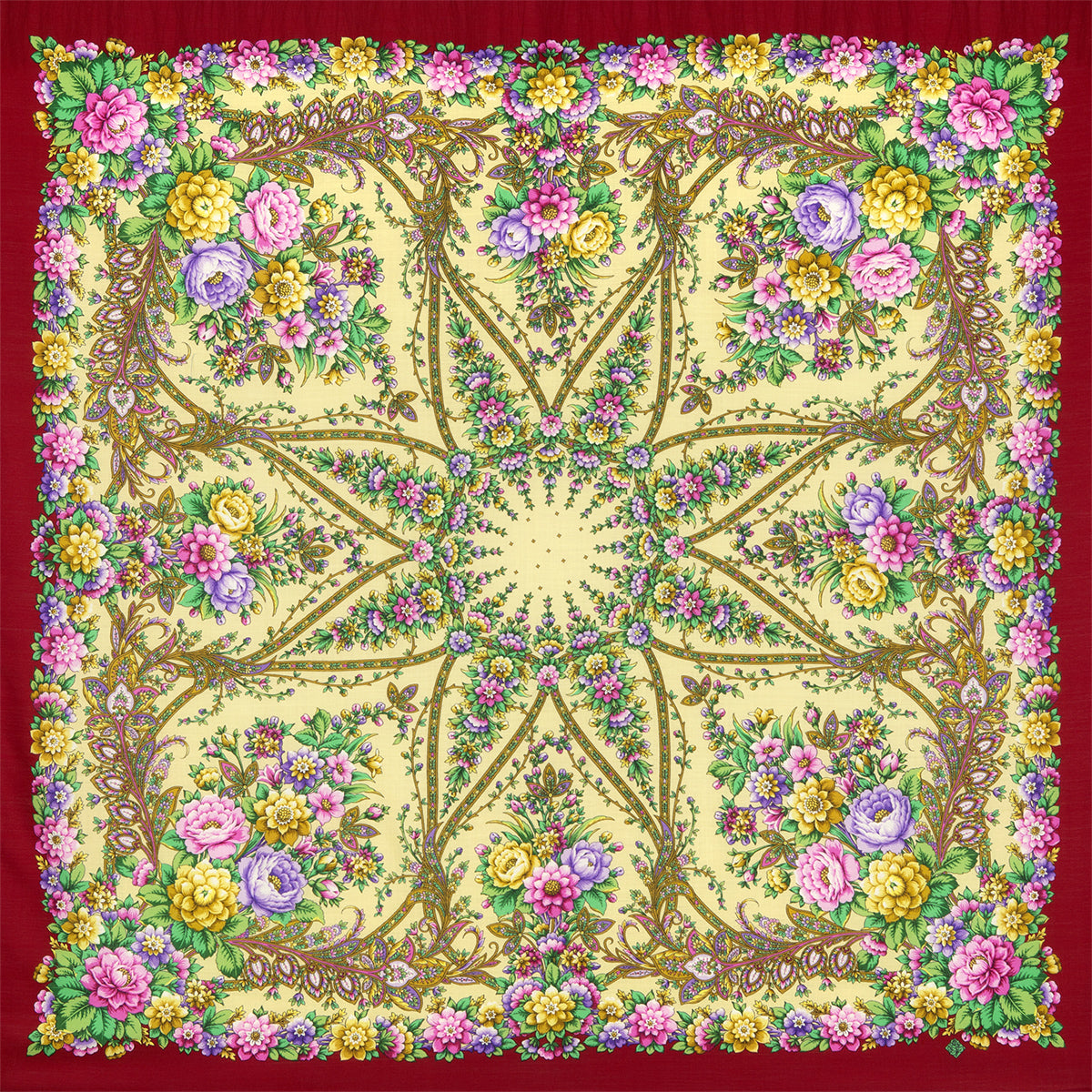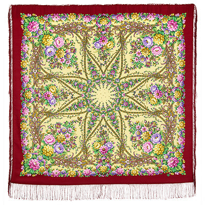 Шерстяная шаль с шелковой бахромой "Звёздный дождь", тип 1640-5, 135x135 см.