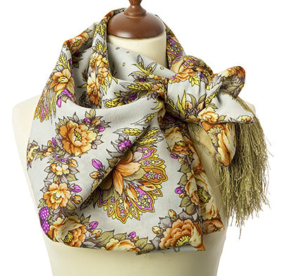 Шаль шерстяная с шелковой бахромой "Молодушка", тип 1511-2, 146х146 см.
