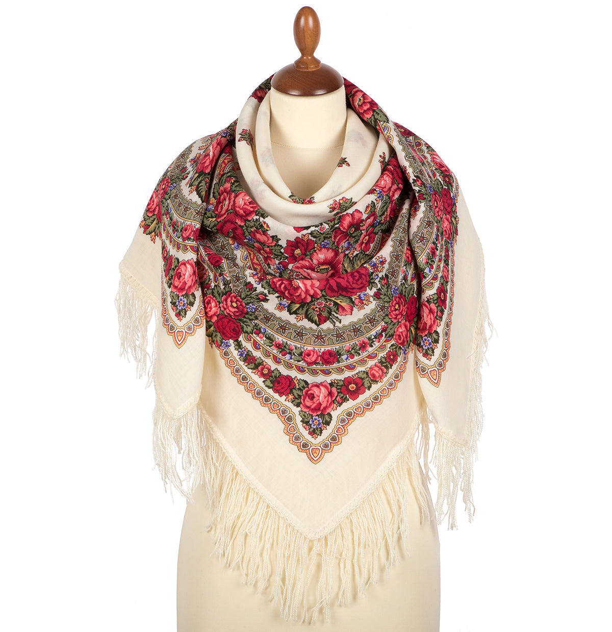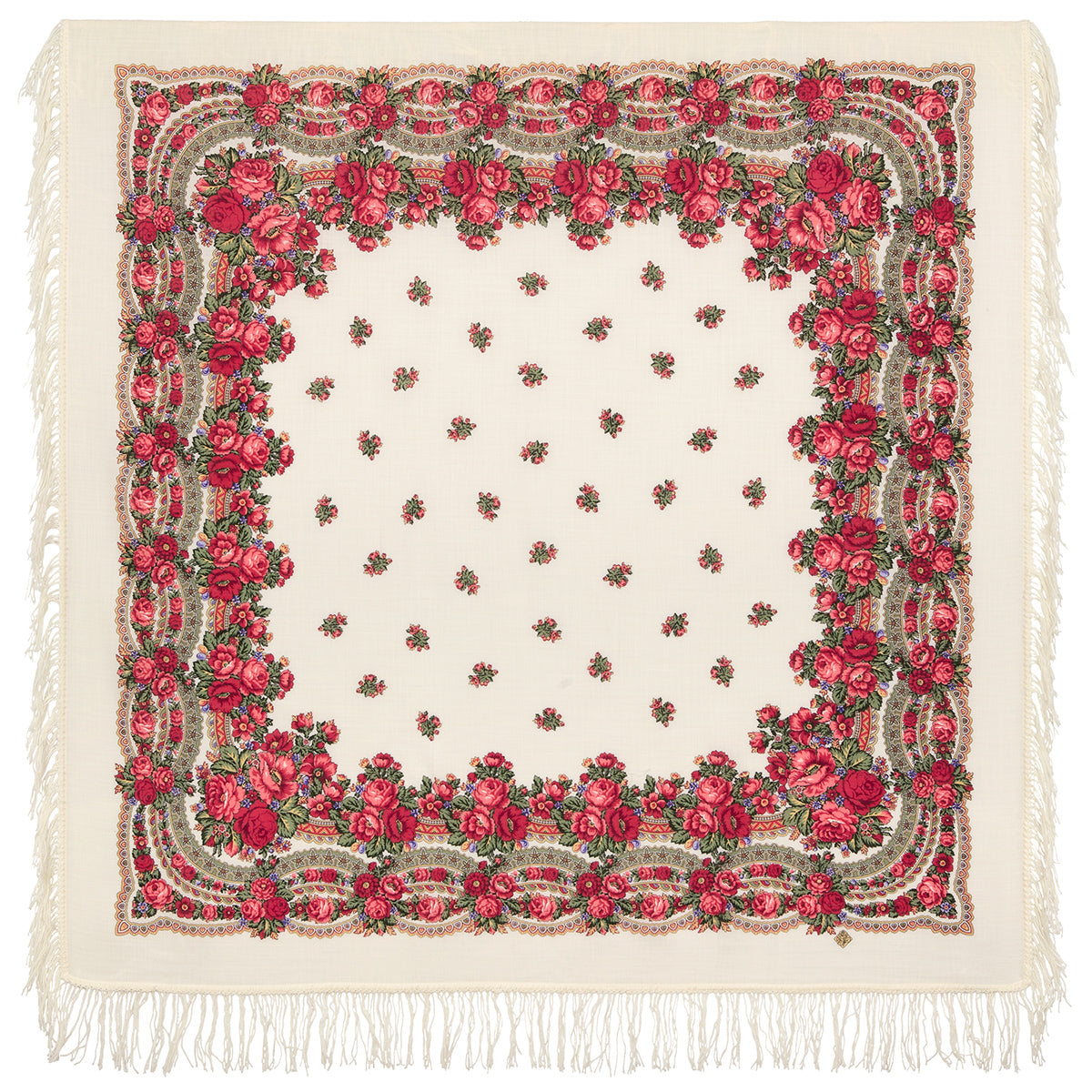 Шерстяная шаль с шерстяной бахромой «Розовый сад», тип 1901-1, 125х125 см.