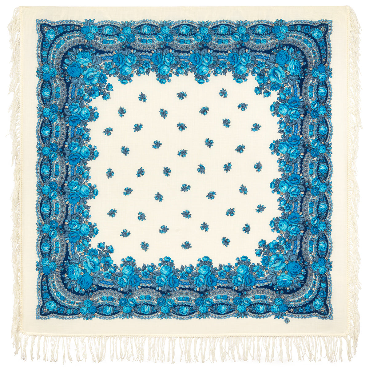 Шерстяная шаль с шерстяной бахромой «Розовый сад», тип 1901-0, 125х125 см.
