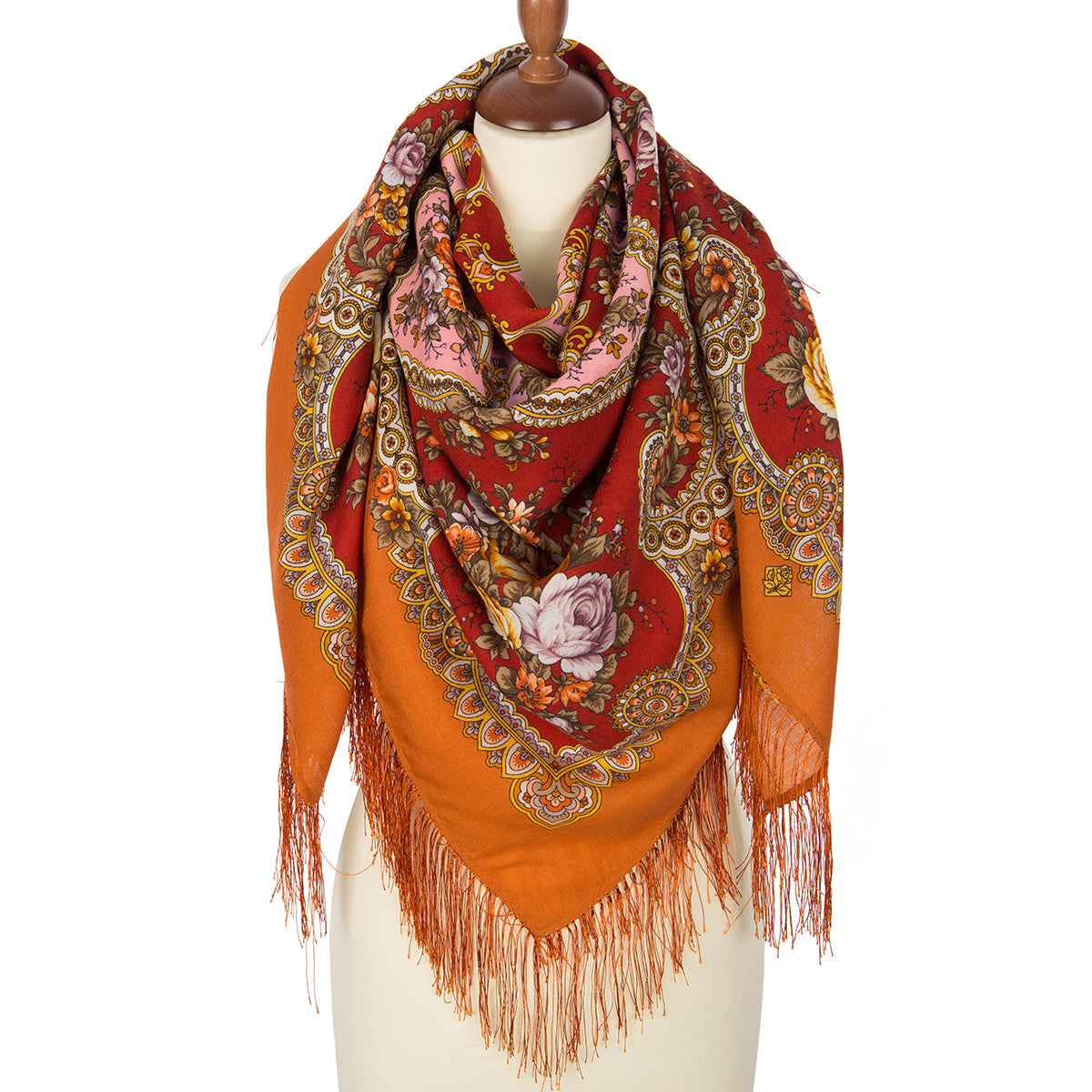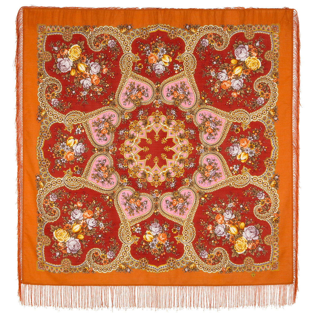 Шаль шерстяная с шелковой бахромой "Нежное сердце", тип 1752-16, 125х125 см.
