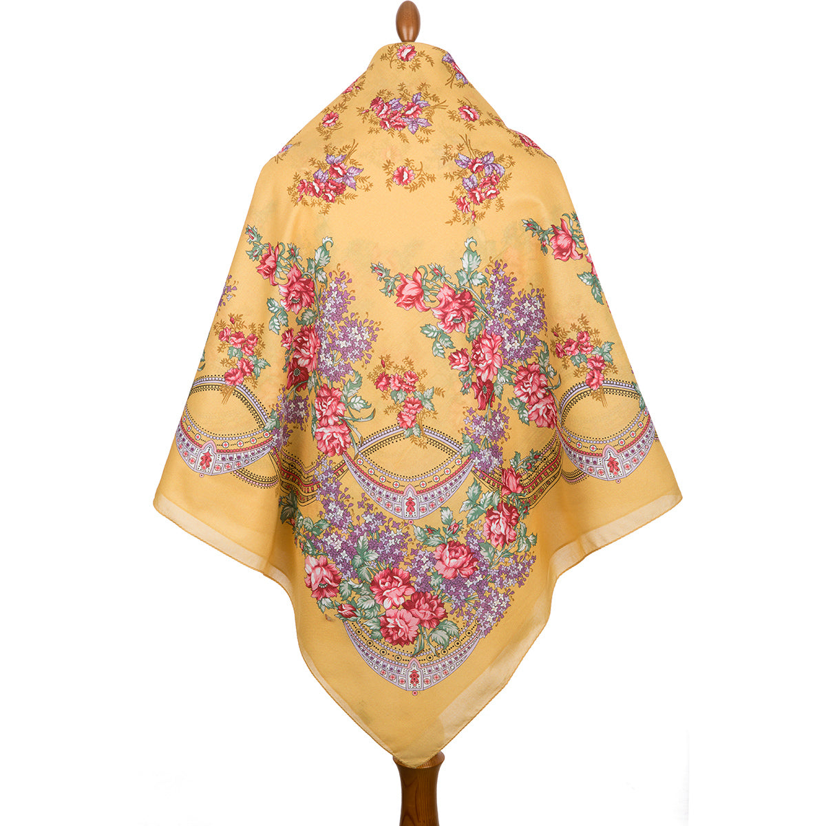 Шерстяная шаль с шелковой бахромой «Вера», тип 516-2, 146x146 см.